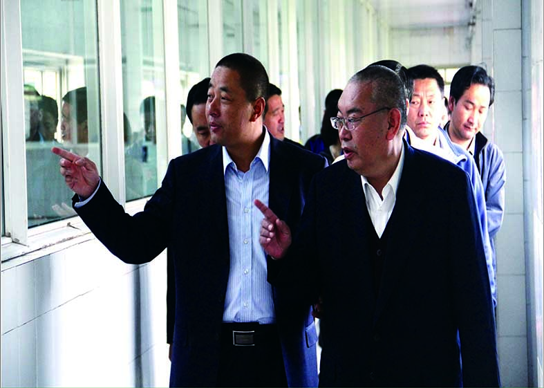 甘肅省人大常委會副主任嘉木樣•洛桑久美•圖丹卻吉尼瑪(右),在華羚集團董事長敏文祥(左)的陪同下視察華羚公司
