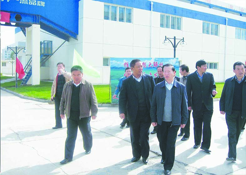 十一屆全國人大常委會委員金炳華(右一),原甘南州委副書記、州長毛生武(左一)在集團董事長敏文祥(左二)的陪同下視察華羚公司