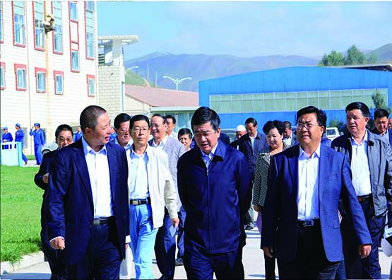 甘南州人大常委會主任安錦龍(右一)在集團董事長敏文祥(左一)的陪同下視察華羚公司
