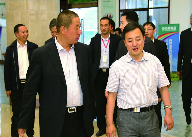 天津市人民政府副秘書長李森陽(右)在華羚集團(tuán)董事長敏文祥(左)的陪同下視察華羚公司