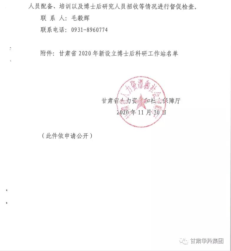 2020年11月30日,經人力資源和社會保障部、全國博士后管理委員會批準,甘肅華羚乳品股份有限公司獲準設立國家級博士后科研工作站。
