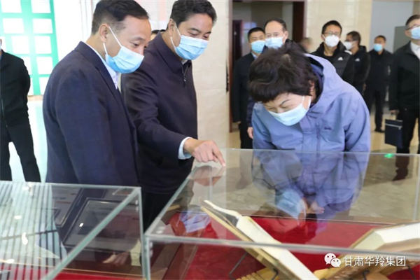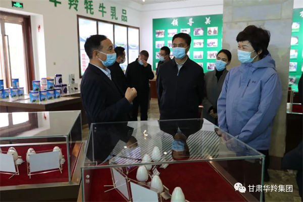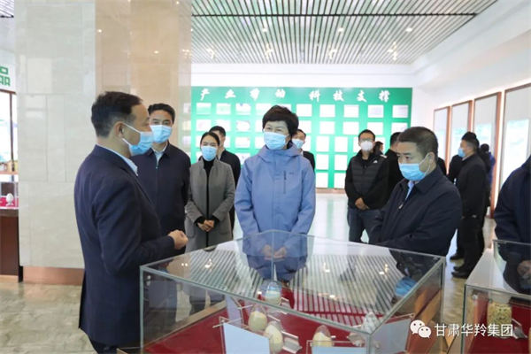 周麗寧廳長等一行領導在甘肅華羚實業集團總經理敏永祥的陪同下參觀了公司榮譽大廳、產品展示廳,并向督查組一行領導詳細匯報了華羚公司以“基地培育、原料市場、生產加工、自主研發、銷售網絡以及延伸產業鏈的完整產業體系”的經營模式。