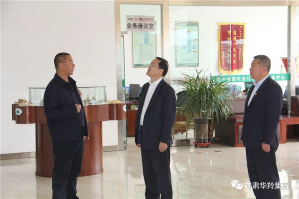 王峰行長一行在華羚實業集團董事長敏文祥的陪同下參觀了公司榮譽大廳、產品展示廳、鄉村振興就業車間、曲拉交易中心及華羚美仁大草原游客服務中心。對華羚公司在科技創新、產業帶動等方面所做的工作給予了充分的肯定和認可。