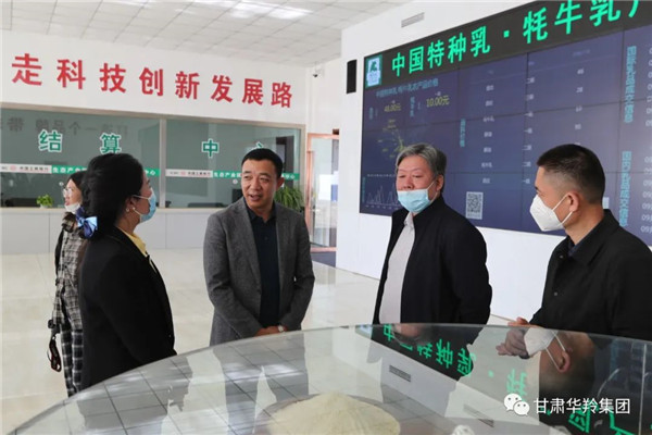在甘肅華羚實業集團乳品事業部總經理敏文杰的陪同下,周迅副秘書長一行先后參觀了華羚乳品集團榮譽大廳、產品展示廳、牦牛乳透明生產車間、中國特種乳•牦牛乳產品交易中心。敏文杰總經理向調研組一行詳細匯報了華羚乳品集團在產業帶動、科技創新、牦牛乳精深加工、鞏固脫貧攻堅成果與鄉村振興戰略有限銜接等方面發揮的龍頭企業帶動作用。周迅副秘書長對華羚乳品集團深耕牦牛乳產業所作出的工作給予了充分肯定和高度評價。